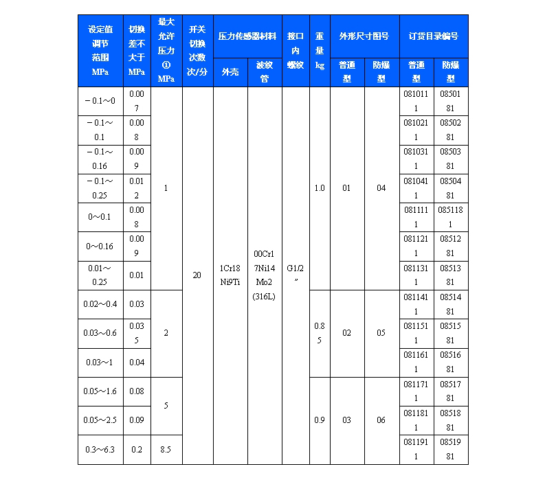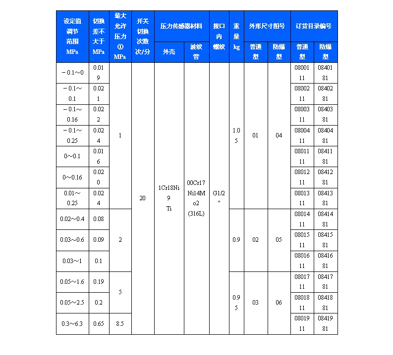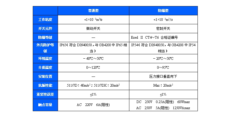 511/7D壓力控制器采用波紋管式的傳感器,可用于腐蝕性氣體和液體介質。511/7D壓力控制器的設定值可調,調節范圍-0.1~6.3MPa。