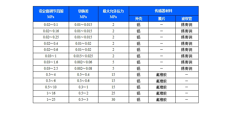 TLD-PC壓力控制器是采用膜片式傳感器,為雙刀雙擲壓力控制器,兩組微動開關的切換值可分別設定;可用于空氣、氣體、水、蒸汽、制冷劑、油等液體介質。控制器的設定值可調,調節范圍0.01~25MPa。