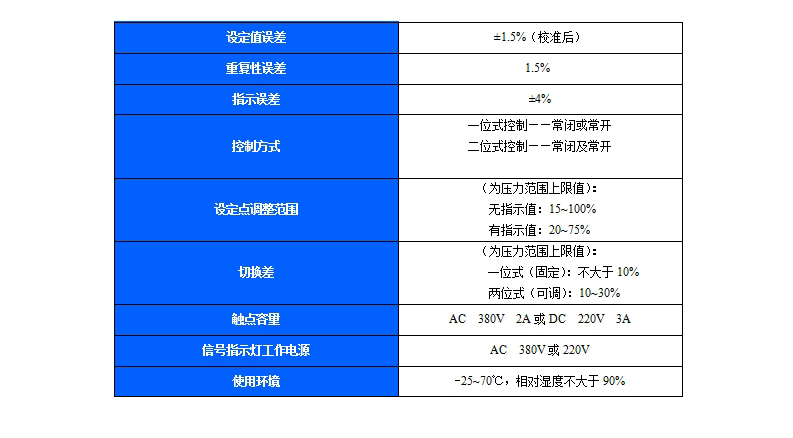 YTK-18/03壓力控制器適用于測量無爆炸危險的流體介質的壓力并進行位式(一位式或兩位式)控制。控制器是借助彈性元件的作用以驅動微動開關工作的壓力控制儀表。控制器具有結構合理、動作準確、使用可靠、開閉頻次高、抗振性好和觸點容量大等特點。控制器按被測(控)對象的各異,分別制成有壓力指示和無壓力指示(各有普通型和耐蝕型)等多種類型。兩位式控制的控制器設有可供調節切換差的裝置,以使被測(控)介質的上、下切換值調至合適的控壓范圍內。此外,控制器還設有信號指示燈,以使控制電路在斷開或接通的同時發出燈光信號。
