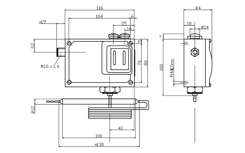 541/7T溫度控制器采用帶毛細(xì)管溫包式傳感器,可用于流動(dòng)的中性氣體和液體介質(zhì),如果介質(zhì)為腐蝕性,安裝時(shí)可選用不銹鋼溫包保護(hù)套套在銅質(zhì)溫包外(見(jiàn)附件)。541/7T溫度控制器的設(shè)定值可調(diào),調(diào)節(jié)范圍-30~280℃。